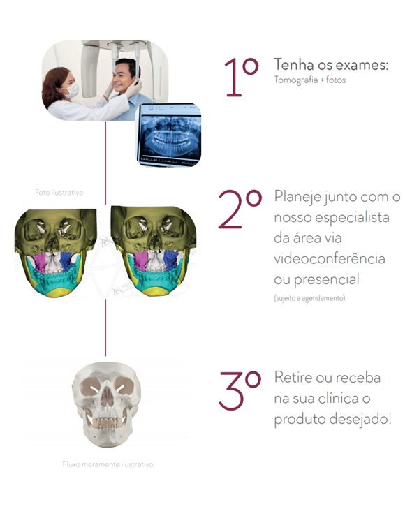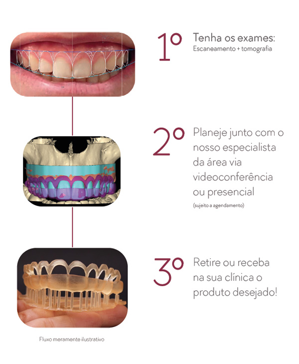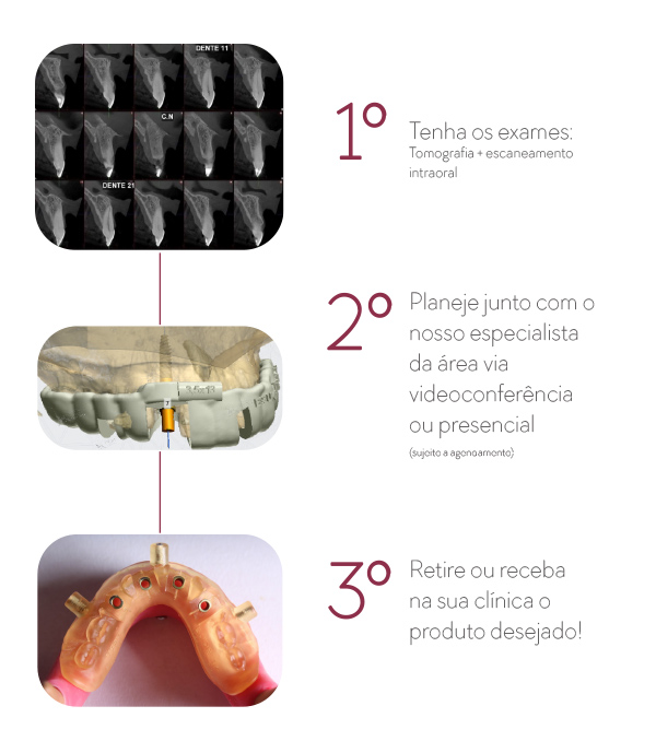 Trata- se de um planejamento reverso onde o dentista e o especialista Mesh realizam o planejamento cirúrgico digital em conjunto para no final obter a guia cirúrgica impressa 3D que será utilizada no momento da cirurgia de implantes!